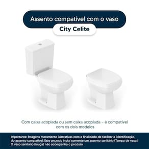 Instalação Simples e Rápida: Com todos os parafusos e componentes necessários inclusos, a instalação é rápida e descomplicada. Seu novo assento estará pronto para uso em questão de minutos. Desenvolvido especificamente para o modelo City da marca Celite, com ou sem caixa acoplada, proporciona um encaixe perfeito, oferecendo estabilidade e conforto durante o uso.