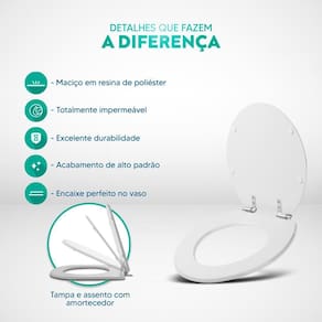 Compatível para uso em vaso sanitário modelo Oval/Convencional com ou sem caixa acoplada.