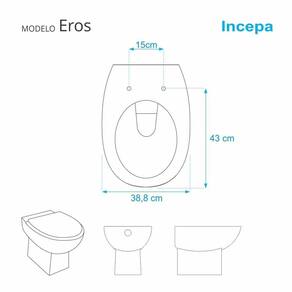 Compatível para uso em vaso sanitário Incepa modelo Eros com ou sem caixa acoplada.
