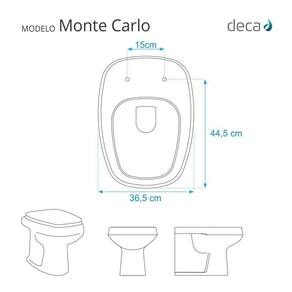 Este assento sanitário é compatível para uso em vaso sanitário Deca modelo Monte Carlo com ou sem caixa acoplada.