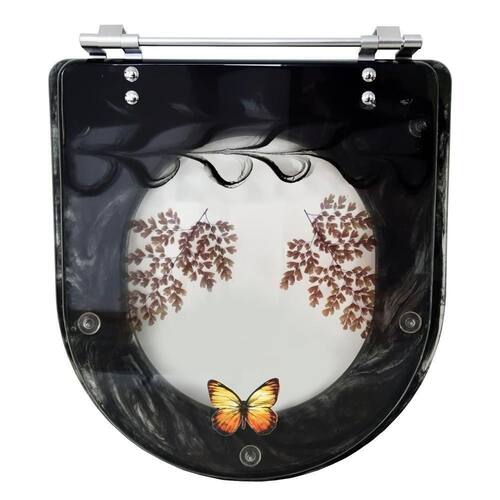 Tampa De Vaso Decorada Calypso Preto Para Louça Incepa 6lpf Assento Sanitário Decorado Calypso marmorizado Preto com Borboleta Amarela e Avencas é a escolha perfeita para seu banheiro. O Assento Sanitário Poliéster é considerado o melhor tipo de assentos sanitários do mercado pelo seu acabamento impecável e excelente durabilidade. Este assento de vaso sanitário Calypso cor Preto é produzido em resina maciça de poliéster. O poliéster é uma resina semelhante ao acrílico, só que mais robusta / resistente. Por isso, é totalmente impermeável, pode ser lavado com água à vontade. Fácil de limpar. Não acumula sujeira.