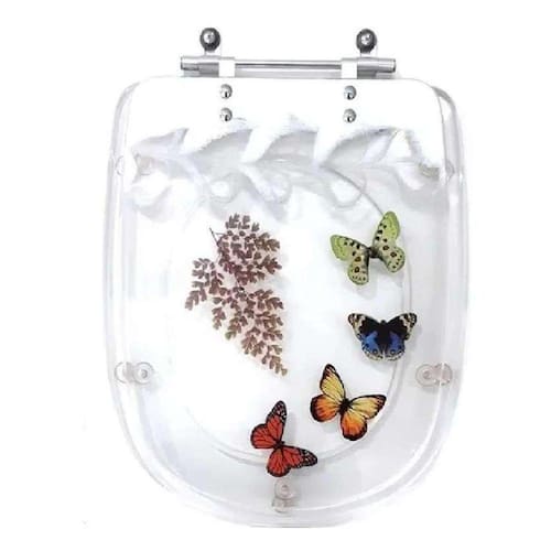 Tampa de Vaso Sanitário Poliéster Sabatini Cristal marmorizado Branco Decorado com 4 borboletas para bacia Icasa é a escolha perfeita para seu banheiro trazendo beleza e praticidade. Este produto Tampa de Vaso Sanitário é produzido em Resina de Poliéster. Totalmente impermeável, com acabamento brilhante e ferragem metálica que não enferruja. A decoração fica dentro da resina, não sai e não desbota com a limpeza diária. É compatível para uso em vaso sanitário com ou sem caixa acoplada. Instalação rápida e fácil, acompanham os parafusos de fixação e basta apenas uma chave de fenda para montar. Entrega garantida e rastreada com embalagem dupla reforçada. Cor: Assento Cristal e Tampa Cristal com marmorizado Branco com decorações de acordo com a foto. Não é possível fazer alterações na decoração. Distância entre centros dos furos da louça: 15cm Acabamento: brilhante Dicas: Itens inclusos: assento e tampa em resina de poliéster, ferragem completa para instalação e embalagem dupla reforçada. Limpeza: recomenda-se a limpeza com água e sabão neutro e não utilizar produtos abrasivos ou químicos. Instalação: Sem desmontar o produto, posicione sobre o vaso sanitário e encaixe os dois parafusos com as borrachas pretas dentro dos furos do vaso. Aperte com a chave de fenda no sentido horário até ficar firme. Importante: este anúncio inclui somente o produto conforme descrição acima. Todos os elementos decorativos das fotos não estão inclusos. Observação: O código 6LPF gravado na louça sanitária corresponde ao fluxo de água de uma descarga e não indica o modelo da mesma.