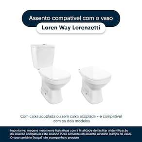Instalação Simples e Rápida: Com todos os parafusos e componentes necessários inclusos, a instalação é rápida e descomplicada. Seu novo assento estará pronto para uso em questão de minutos. Desenvolvido especificamente para o modelo Loren Way da marca Lorenzetti, com ou sem caixa acoplada, proporciona um encaixe perfeito, oferecendo estabilidade e conforto durante o uso.