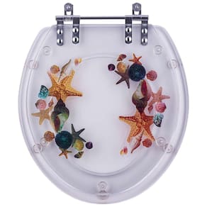 Kit contendo 1 assento sanitário decorado Fundo do Mar e 1 lixeira na mesma decoração. Escolha perfeita para completar seu banheiro. Assento Sanitário em resina de poliester, material semelhante ao acrílico só que mais robusto / resistente. É totalmente impermeável. O assento (parte onde senta) é transparente em resina translucida. A tampa é transparente com decoração de Fundo do Mar. A decoração é uma transparência que fica dentro da resina, não sai e não desbota com a limpeza diária. Lixeira decorada com tampa em resina de poliester, no mesmo material e decoração do assento sanitário. O corpo da lixeira é em plástico polipropileno, muito resistente e fácil de limpar. Medidas do assento sanitário: 43cm comprimento x 38cm largura x 15cm distancia entre os parafusos. É compatível com vasos sanitários de modelo convencional / oval / universal. Medidas da lixeira: 20cm altura x 20cm largura