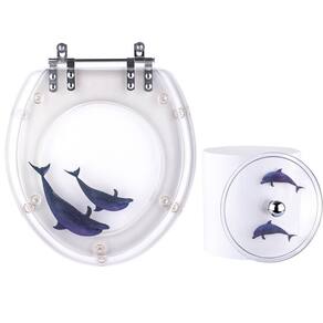 Kit contendo 1 assento sanitário decoradogolfinhos e 1 lixeira na mesma decoração. Escolha perfeita para completar seu banheiro.assento sanitário em resina de poliester, material semelhante ao acrílico só que mais robusto / resistente. É totalmente impermeável. O assento (parte onde senta) é transparente em resina translucida. A tampa é transparente com decoração de golfinhos. A decoração é uma transparência que fica dentro da resina, não sai e não desbota com a limpeza diária.lixeira decorada com tampa em resina de poliester, no mesmo material e decoração do assento sanitário. O corpo da lixeira é em plástico polipropileno, muito resistente e fácil de limpar.medidas do assento sanitário:43cm comprimento x 38cm largura x 15cm distancia entre os parafusos. Écompatível com vasos sanitários de modelo convencional / oval / universal.medidas da lixeira:20cm altura x 20cm largura