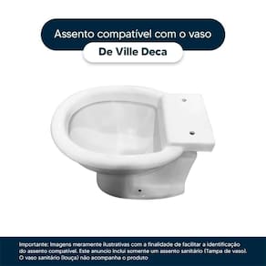Este assento sanitário é compatível para uso em vaso sanitário Deca modelo De Ville com ou sem caixa acoplada.
