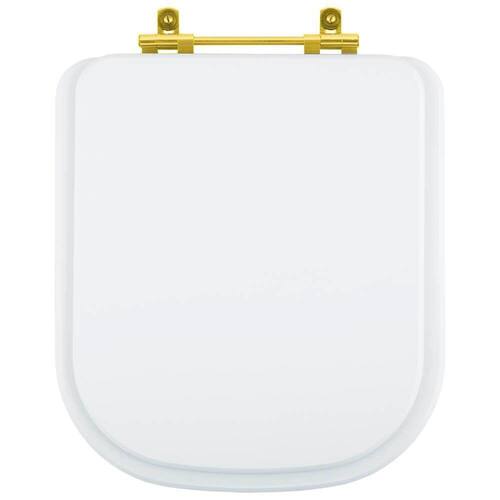 Itens inclusos: assento sanitário em madeira MDF com pintura laqueada com ferragem dourada em alumínio anodizado.
