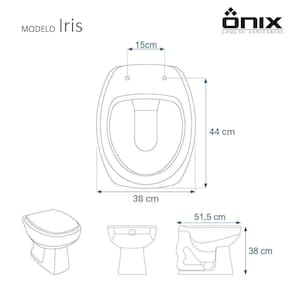 Compatível com o vaso sanitário Onix modelo Iris com ou sem caixa acoplada.