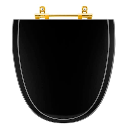 A Tampa de Vaso Laqueado Aloha Preto para bacia Celite com Ferragem Dourada é a opção ideal para quem busca combinar funcionalidade com elegância em seu banheiro.