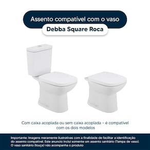 Detalhes e Cuidados Especiais: * Cor: Branco * Compatibilidade: Modelo Debba Square da marca Roca * Conteúdo da Embalagem: Assento sanitário, parafusos de fixação e instruções de instalação. * Fabricante do Assento Sanitário: Pontto Lavabo.