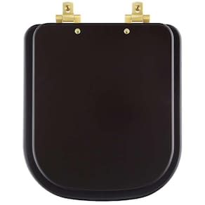 Tampa De Vaso Laqueado Com Amortecedor Piano Marrom Fosco Para Bacia Deca Com Ferragem Dourada