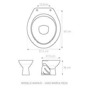 Assento Sanitário (tampa de vaso) fabricado em madeira MDF com pintura laqueada, com proteção raios UV, que garante excelente acabamento e durabilidade. Compatível com vasos (bacias/louças) sanitários com ou sem caixa acoplada. Tem calços de PVC instalados na tampa e no assento para proporcionar estabilidade ao uso, pois distribui o peso uniformemente sobre a louça sanitária. Montagem simples e fácil. Possui ferragem em alumínio anodizado que não enferruja/oxida e oferece muita resistência. O assento é acompanhado por parafusos para instalação. Embalagem dupla reforçada garante o recebimento do produto totalmente protegido. Especificações: - Dimensões da caixa: largura: 51,50cm. Altura: 4,00cm comprimento: 38,00cm - Peso do produto: 1,98kg - Acabamento: brilhante - Uso: este assento é adequado para uso na louça Deca de modelo Marajo - Garantia: 3 meses - Itens inclusos: Tampa e assento com calços de PVC, ferragem inoxidável, embalagem duplamente reforçada. Contém todos os parafusos e encaixes para instalação, sendo necessária somente uma chave de fenda para instalar o produto na louça sanitária. Instalação: posicione o produto, devidamente centralizado, em cima do vaso sanitário. Sem desmontar a ferragem, insira as buchas de borracha dentro dos furos da bacia sanitária. Utilizando uma chave de fenda, aperte o parafuso no sentido horário até que o assento esteja firme no vaso. Manutenção: recomendamos a limpeza periódica com pano levemente umedecido com sabão neutro. Não usar esponjas abrasivas ou palha de aço nem qualquer tipo de produto químico.
