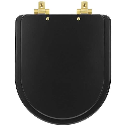 Tampa De Vaso Mdf Com Amortecedor Smart Onix (preto Fosco) Para Bacia Celite Com Ferragem Dourada