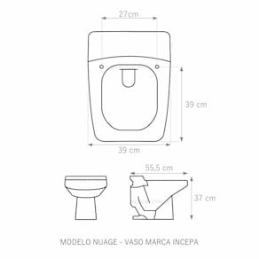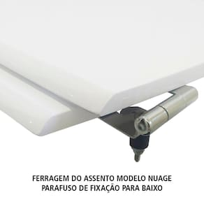Assento Sanitário (tampa de vaso) fabricado em madeira MDF com pintura laqueada, com proteção raios UV, que garante excelente acabamento e durabilidade. Compatível com vasos (bacias/louças) sanitários com ou sem caixa acoplada. Tem calços de PVC instalados na tampa e no assento para proporcionar estabilidade ao uso, pois distribui o peso uniformemente sobre a louça sanitária. Montagem simples e fácil. Possui ferragem em alumínio anodizado que não enferruja/oxida e oferece muita resistência. O assento é acompanhado por parafusos para instalação. Embalagem dupla reforçada garante o recebimento do produto totalmente protegido. Especificações: - Dimensões da caixa: largura: 49,50cm. Altura: 4,00cm comprimento: 39,50cm - Peso do produto: 1,98kg - Acabamento: brilhante - Uso: este assento é adequado para uso na louça Incepa modelo Nuage - Garantia: 3 meses - Itens inclusos: Tampa e assento em MDF com calços de PVC, ferragem inoxidável, embalagem duplamente reforçada. Contém todos os parafusos e encaixes para instalação, sendo necessária somente uma chave de fenda para instalar o produto na louça sanitária. Instalação: posicione o produto, devidamente centralizado, em cima do vaso sanitário. Sem desmontar a ferragem, insira as buchas de borracha dentro dos furos da bacia sanitária. Encaixe os parafusos e posicione as porcas. Utilizando uma chave de fenda, aperte o parafuso no sentido horário até que o assento esteja firme e fixo no vaso. Manutenção: recomendamos a limpeza periódica com pano levemente umedecido com sabão neutro. Não usar esponjas abrasivas ou palha de aço nem qualquer tipo de produto químico.