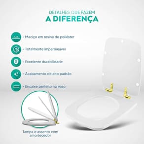 A Tampa de Vaso Poliéster Com Amortecedor Boss Matte Black (Preto Fosco) para Bacia Incepa com Ferragem Dourada é a opção ideal para quem busca combinar funcionalidade com elegância em seu banheiro.