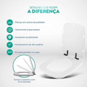 Feche Suavemente com Sofisticação: Composto por dois amortecedores, um para a tampa e outro para o assento, eles garantem um fechamento suave, evitando batidas indesejadas.