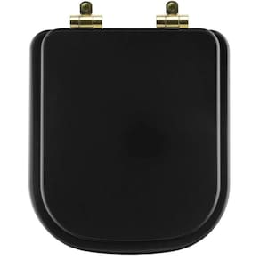 Tampa De Vaso Poliéster Com Amortecedor Quadra Preto Fosco Para Bacia Deca Com Ferragem Dourada