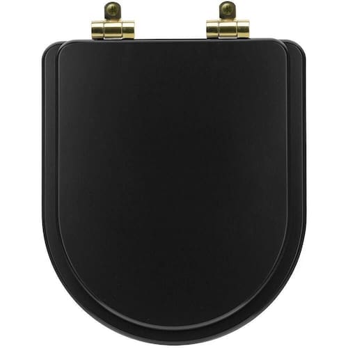 Tampa De Vaso Poliéster Com Fechamento Lento Duna Preto Fosco Para Louça Deca Com Ferragem Dourada