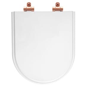 Tampa De Vaso Poliéster Com Fechamento Lento Level Branco Para Louça Deca Com Ferragem Rose Gold