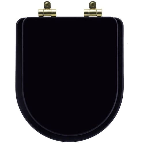 Tampa De Vaso Poliéster Com Fechamento Lento Link-lk Preto Para Louça Deca Com Ferragem Dourada