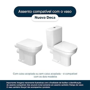 Compatível para uso em vaso sanitário Deca modelo Nuova com ou sem caixa acoplada.
