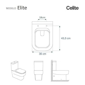 Compatível com o vaso sanitário Celite modelo Elite com ou sem caixa acoplada.