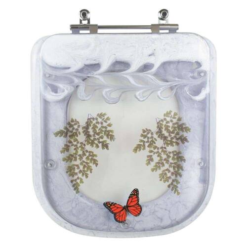 Tampa de Vaso Poliéster Decorada Borboleta Quadra Branco para louça Deca