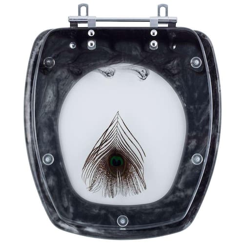 Tampa de Vaso Poliéster Decorada Pena de Pavão Fit Preto para louça Celite é a escolha perfeita para seu banheiro. O Assento Sanitário Poliéster é considerado o melhor tipo de assentos sanitários do mercado pelo seu acabamento impecável e excelente durabilidade.