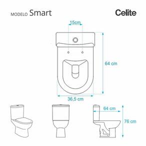 Compatível para uso em vaso sanitário Celite modelo Smart com ou sem caixa acoplada.