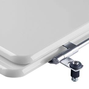 O encaixe do assento sanitário no vaso é feito por uma ferragem metálica que não oxida e não enferruja.