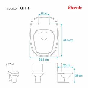Tampa de Vaso Poliéster Turim Branco para bacia Eternit 6lpf é a escolha perfeita para seu banheiro. O Assento Sanitário Poliéster é considerado o melhor tipo de assentos sanitários do mercado pelo seu acabamento impecável e excelente durabilidade. Este assento de vaso sanitário é produzido em resina maciça de poliéster. O poliéster é uma resina semelhante ao acrílico, só que mais robusta / resistente. Por isso, é totalmente impermeável, pode ser lavado com água à vontade. Fácil de limpar. Não acumula sujeira. Compatível com o vaso sanitário Eternit modelo Turim com ou sem caixa acoplada (é compatível com os dois tipos de vasos). Produto completo, acompanha parafusos para instalação no vaso. Fácil de instalar, basta apenas uma chave de fenda e fica pronto em menos de um minuto. O encaixe do assento sanitário no vaso é feito por uma ferragem metálica que não oxida e não enferruja. Dicas: Limpeza: recomenda-se a limpeza do assento sanitário poliéster com água e sabão neutro, não utilizar produtos abrasivos. Material: maciço em resina de poliéster. Ferragens metálicas em alumínio anodizado (mesmo material utilizado em box de banheiro, não oxida e não enferruja) Peso: 2,7kg Instalação: sem desmontar o produto, posicione o assento sobre o vaso sanitário. Então encaixe os parafusos com a borracha preta dentro dos furos do vaso, e depois aperte com uma chave de fenda até ficar bem firme no vaso. Ao apertar com a chave de fenda, a porca irá subir e pressionar a borrachinha preta, que irá prender por pressão nos furos do vaso. Importante: este anúncio inclui somente um assento sanitário conforme descrito acima. Todos os elementos decorativos das fotos não acompanham o produto. Ean: 7899983633120
