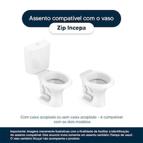 Compatível com o modelo Zip da marca Incepa, este assento se encaixa perfeitamente no vaso sanitário.