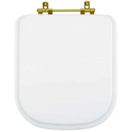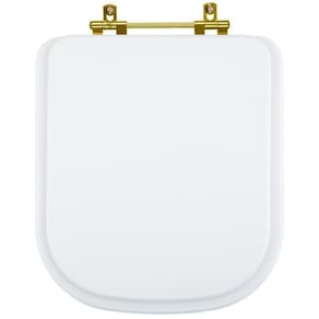 Itens inclusos: assento e tampa em madeira MDF com pintura laqueada, ferragem metálica na cor dourada e embalagem dupla reforçada.
