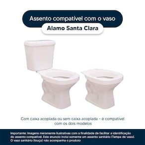 Detalhes e Cuidados Especiais: * Cor: Bege Claro * Compatibilidade: Modelo Alamo da marca Santa Clara * Conteúdo da Embalagem: Assento sanitário, parafusos de fixação e instruções de instalação.