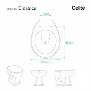 Este assento sanitário é compatível para uso em vaso sanitário Celite modelo Classica com ou sem caixa acoplada.