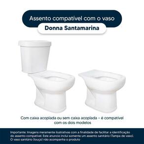 Detalhes e Cuidados Especiais: * Cor: Bege Claro * Compatibilidade: Modelo Donna da marca Santamarina * Conteúdo da Embalagem: Assento sanitário, parafusos de fixação e instruções de instalação.