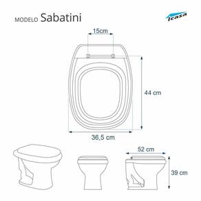 Tampa de Vaso Sanitário com Amortecedor Sabatini Branco para bacia Icasa traz beleza e praticidade ao seu banheiro. Esta Tampa de Vaso é produzida em MDF com pintura laqueada, acabamento brilhante e ferragem metálica que não oxida com exclusivo sistema de fechamento lento da tampa e assento. Pode ser em vaso sanitário com ou sem caixa acoplada. É muito rápido e fácil instalar, acompanha os parafs de fixação e basta apenas uma chave de fenda para instalar no vaso. Entrega garantida e rastreada com embalagem dupla reforçada. Cor: Branco. Distância entre meio dos furos da louça: 15cm. Acabamento: brilhante. Dicas: Itens incls: assento e tampa em madeira MDF com pintura laqueada com ferragem com fechamento lento. Limpeza: recomenda-se a limpeza com pano úmido e sabão neutro e não utilizar produtos abrasivos ou químicos. Instalação: Sem desmontar o produto, posicione sobre os furos do vaso sanitário e encaixe os dois parafs com as borrachas pretas dentro dos furos do mesmo. Aperte com a chave de fenda no sentido horário até ficar firme. Importante: este anúncio inclui somente o produto conforme descrição acima. Todos os elementos decorativos das fotos não estão incls. Observação: O código 6LPF gravado na bacia sanitária corresponde ao fluxo de água em litros de uma descarga e não indica o modelo da mesma.