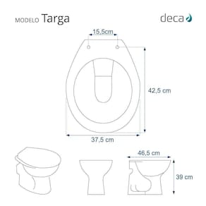 Detalhes e Cuidados Especiais: * Cor: Creme (Bege) * Compatibilidade: Modelo Targa da marca Deca * Conteúdo da Embalagem: Assento sanitário, parafusos de fixação e instruções de instalação.