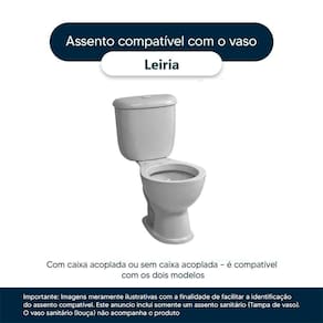 Detalhes e Cuidados Especiais: * Cor: Preto * Compatibilidade: Modelo Leiria da marca Luzarte * Conteúdo da Embalagem: Assento sanitário, parafusos de fixação e instruções de instalação. * Fabricante do Assento Sanitário: Pontto Lavabo.