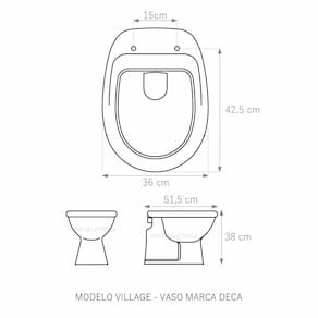 Tampa De Vaso Village Preto Tampa Para Vaso Deca De Mdf Preto Assento Sanitário tampa de vaso fabricado em madeira MDF com pintura laqueada, com proteção raios UV, que garante excelente acabamento e durabilidade. Compatível com vasos bacias/louças sanitários com ou sem caixa acoplada. Tem calços de PVC instalados na tampa e no assento para proporcionar estabilidade ao uso, pois distribui o peso uniformemente sobre a louça sanitária. Montagem simples e fácil. Possui ferragem em alumínio anodizado que não enferruja/oxida e oferece muita resistência. O assento é acompanhado por parafusos para instalação. Embalagem dupla reforçada garante o recebimento do produto totalmente protegido. Especificações: - Dimensões da caixa: largura: 49,50cm. Altura: 4,00cm comprimento: 39,50cm - Peso do produto: 1,98kg - Acabamento: brilhante - Uso: este assento é adequado para uso na louça Deca modelo Village - Garantia: 3 meses - Itens inclusos: Tampa e assento em MDF com calços de PVC, ferragem inoxidável, embalagem duplamente reforçada. Contém todos os parafusos e encaixes para instalação, sendo necessária somente uma chave de fenda para instalar o produto na louça sanitária. Instalação: posicione o produto, devidamente centralizado, em cima do vaso sanitário. Sem desmontar a ferragem, insira as buchas de borracha dentro dos furos da bacia sanitária. Encaixe os parafusos e posicione as porcas. Utilizando uma chave de fenda, aperte o parafuso no sentido horário até que o assento esteja firme e fixo no vaso. Manutenção: recomendamos a limpeza periódica com pano levemente umedecido com sabão neutro. Não usar esponjas abrasivas ou palha de aço nem qualquer tipo de produto químico.
