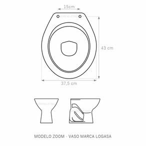 Assento Sanitário (tampa de vaso) fabricado em madeira MDF com pintura laqueada, com proteção raios UV, que garante excelente acabamento e durabilidade. Compatível com vasos (bacias/louças) sanitários com ou sem caixa acoplada. Tem calços de PVC instalados na tampa e no assento para proporcionar estabilidade ao uso, pois distribui o peso uniformemente sobre a louça sanitária. Montagem simples e fácil. Possui ferragem em alumínio anodizado que não enferruja/oxida e oferece muita resistência. O assento é acompanhado por parafusos para instalação. Embalagem dupla reforçada garante o recebimento do produto totalmente protegido. Especificações: - Dimensões da caixa: largura: 51,50cm. Altura: 4,00cm comprimento: 38,00cm - Peso do produto: 1,98kg - Acabamento: brilhante - Uso: este assento é adequado para uso na louça Logasa de modelo Zoom - Garantia: 3 meses - Itens inclusos: Tampa e assento com calços de PVC, ferragem inoxidável, embalagem duplamente reforçada. Contém todos os parafusos e encaixes para instalação, sendo necessária somente uma chave de fenda para instalar o produto na louça sanitária. Instalação: posicione o produto, devidamente centralizado, em cima do vaso sanitário. Sem desmontar a ferragem, insira as buchas de borracha dentro dos furos da bacia sanitária. Utilizando uma chave de fenda, aperte o parafuso no sentido horário até que o assento esteja firme no vaso. Manutenção: recomendamos a limpeza periódica com pano levemente umedecido com sabão neutro. Não usar esponjas abrasivas ou palha de aço nem qualquer tipo de produto químico.