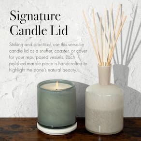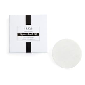 Tampa de vela exclusiva LAFCO New York — Mármore branco polido — TAMPA DE VELA — Impressionante e prático, use este acessório versátil como abafador, porta-copos ou cobertura para seus recipientes reutilizados. - EXCLUSIVO DA LAFCO - Cada peça de mármore polido é feita à mão para destacar a beleza natural da pedra. - SOBRE NÓS - A LAFCO New York se dedica a transformar momentos do dia a dia em poderosas viagens sensoriais. De nossas velas de vidro soprado a nossos sabonetes em barra, cada produto combina fragrâncias evocativas com design artístico para criar um ambiente e um clima completos.