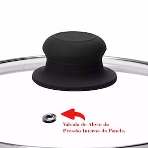 Características: • Vidro temperado • Borda Inoxidável • Pomel Baquelite antitérmico • Com furo para saída do ar quente • Para utensílios com 14cm de diâmetro (encaixe)