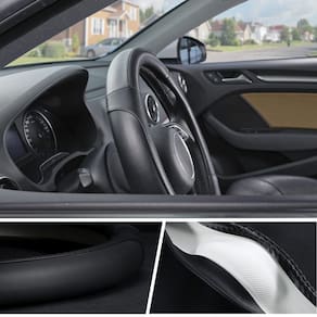 SEG Direct Capa de volante de carro tamanho pequeno para Prius Civic Modelo 3 Camaro Spark Rogue Mini Smart Audi com diâmetro externo de 35.6 cm-14 1/10.2 cm, couro de microfibra preto - ?Proteja o interior do seu carro?A capa de volante durável e fácil de instalar é a melhor opção para cobrir um volante de fábrica autêntico antigo ou desgastado. O design delicado de emenda adiciona textura ao interior do seu carro. - ?Salva-mãos?O couro de microfibra fino e flexível é muito mais macio do que o volante instalado de fábrica. Oferece um toque confortável ao dirigir, ajuda a reduzir a fadiga ao dirigir e traz a você uma experiência de condução agradável. - ?Antiderrapante?Construída com exterior de couro de microfibra menos escorregadio e forro de borracha, esta capa de roda de carro adiciona desempenho de segurança seguro ao dirigir. Ele também protege seu volante de queimaduras solares, arranhões, desbotamento, desgaste e sujeira. - ?Chega de gruda?A capa do volante automático é confortável de segurar, absorve o suor das mãos causado pelo calor do verão e permite que você segure o volante com firmeza. - ?Pronto para instalar?Basta aquecer a capa de direção para munites e colocá-la no volante. A instalação é bastante fácil, qualquer adulto pode instalar esta capa de volante. Adequado para volantes de tamanho pequeno com diâmetro externo de 35,5 a 35,5 cm.