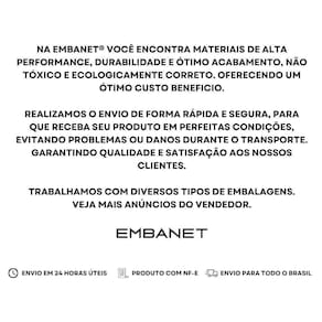 A EMBANET é uma marca renomada no mercado, conhecida por oferecer materiais de alta performance, durabilidade e ótimo acabamento. Além disso, nossos produtos são fabricados de forma ecológica e não tóxica, contribuindo para a preservação do meio ambiente.