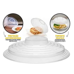 O design inteligente e flexível se adapta a diferentes tamanhos de pratos, potes e recipientes, oferecendo encaixe perfeito e vedação eficiente.