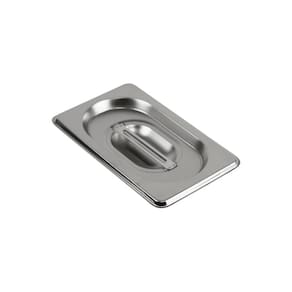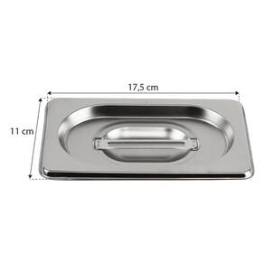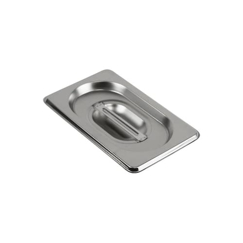 Tampa GN 1/9 sem recorte em aço inox. Ideal para cobrir cubas de condimentos e toppings com segurança e higiene.