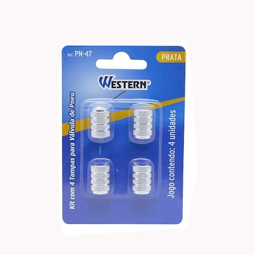 Tampa Para Valvula De Pneu Aluminio Prata Ean: 7465386523322 Validade: indeterminada do fornecedor: 90 dias Recomendações do produto: mantenha longe das crianças Tamanho aproximado: 1,5 cm cada Peso aproximado: 17 g Tipo de produto: kit com 4 tampas para valvula de pneu Cor: prata Composição: alumínio. Marca: Não Informado