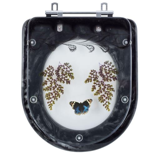Tampa para Vaso Deca Carrara Preto com Borboleta Azul Escuro é a escolha perfeita para seu banheiro. O Assento Sanitário Poliéster é considerado o melhor tipo de assentos sanitários do mercado pelo seu acabamento impecável e excelente durabilidade.