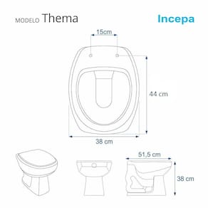 Compatível com o vaso sanitário Incepa modelo Thema com ou sem caixa acoplada (é compatível com os dois tipos de vasos).
